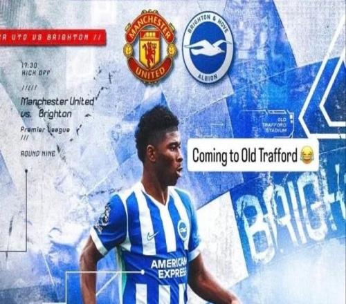 英超第9轮,布莱顿即将客战曼联。赛前,巴莱巴在社媒发布比赛预告图后似乎觉得不妥,随即删除并重新发布。赛前,巴莱巴在个人社媒账号发布比赛预告图时配文“来到老特拉福德”并附